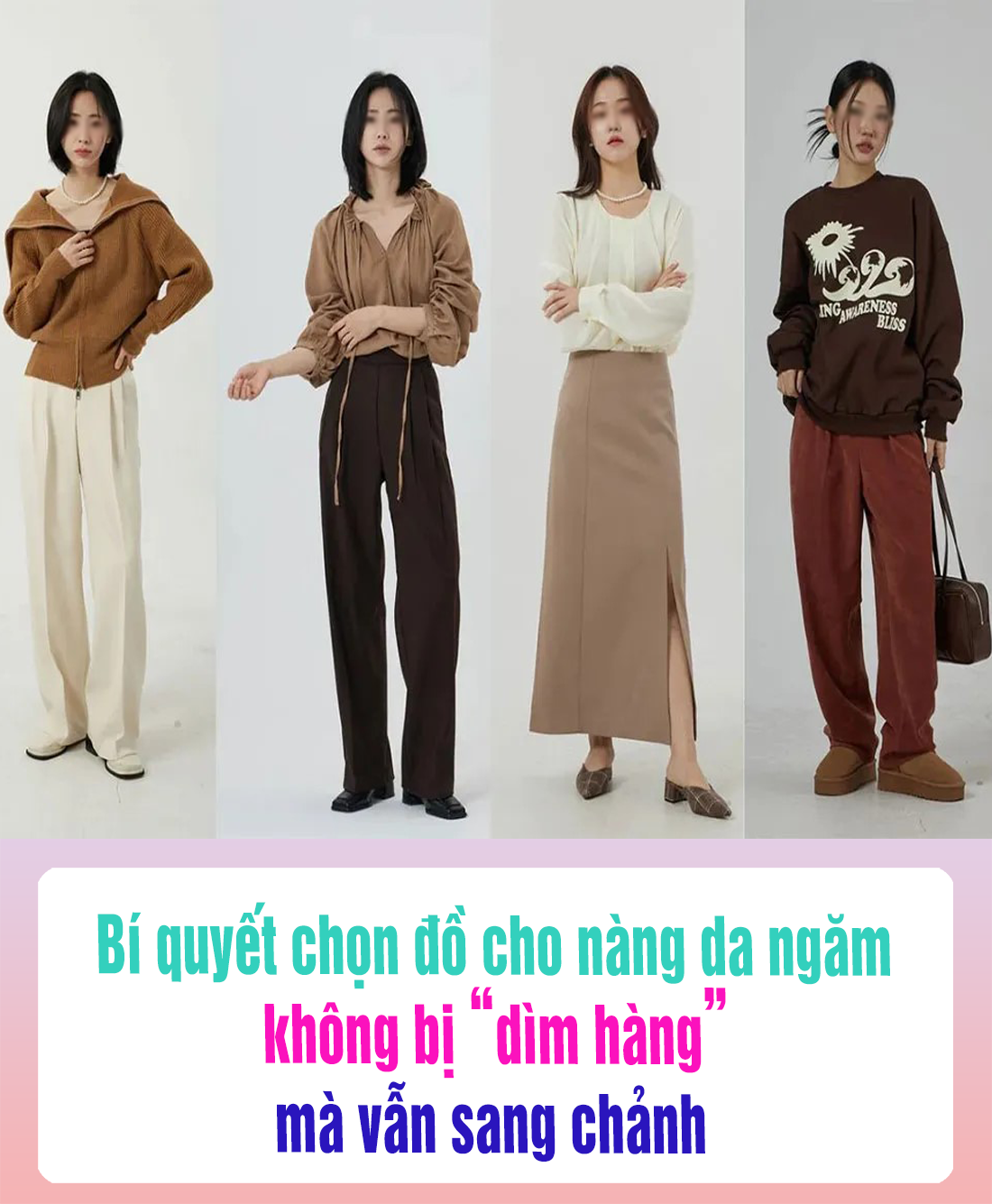 Nàng da ngăm cần tránh diện màu xám nâu, xám đen mà cần ưu tiên cho trang phục tông xám be, xám sữa… Nhiều nàng da ngăm thường e ngại diện cả cây đồ đen vì sợ xỉn màu, vậy thì bạn có thể kết hợp item màu đen với những món đồ sáng màu khác để tạo điểm nhấn và cân bằng sáng – tối cho set đồ.
