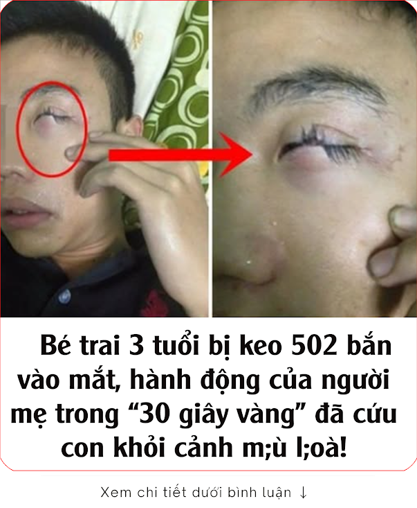 Người mẹ mở lọ keo 502 để sửa một số đồ trang trí nhỏ bị hỏng, còn đứa con 3 tuổi thì đang chơi đồ chơi của mình ở gần đó. Sau khi sử dụng, người mẹ bất cẩn quên không đóng nắp lọ keo, để lọ keo rơi xuống sàn và đi làm việc khác. Không ngờ, bé trai chơi gần đó đã vô ý giẫm phải lọ keo, làm keo bắn ra ngoài và một ít keo 502 đã bắn thẳng vào mắt em bé.