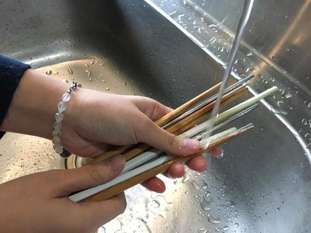 – Vệ sinh: Ăn xong phải rửa đũa ngay, rửa chậm rãi, cẩn thận. Ngô An Hoa cho biết, khi rửa đũa, nên nhỏ một ít chất tẩy rửa vào khăn mềm, chà xát từng chiếc một, có thể giảm ma sát, giúp đũa sạch hơn. Đũa nhúng vào chất tẩy rửa phải được rửa sạch từng chiếc một dưới vòi nước chảy, không bao giờ được chà cả bó đũa trong nước.
