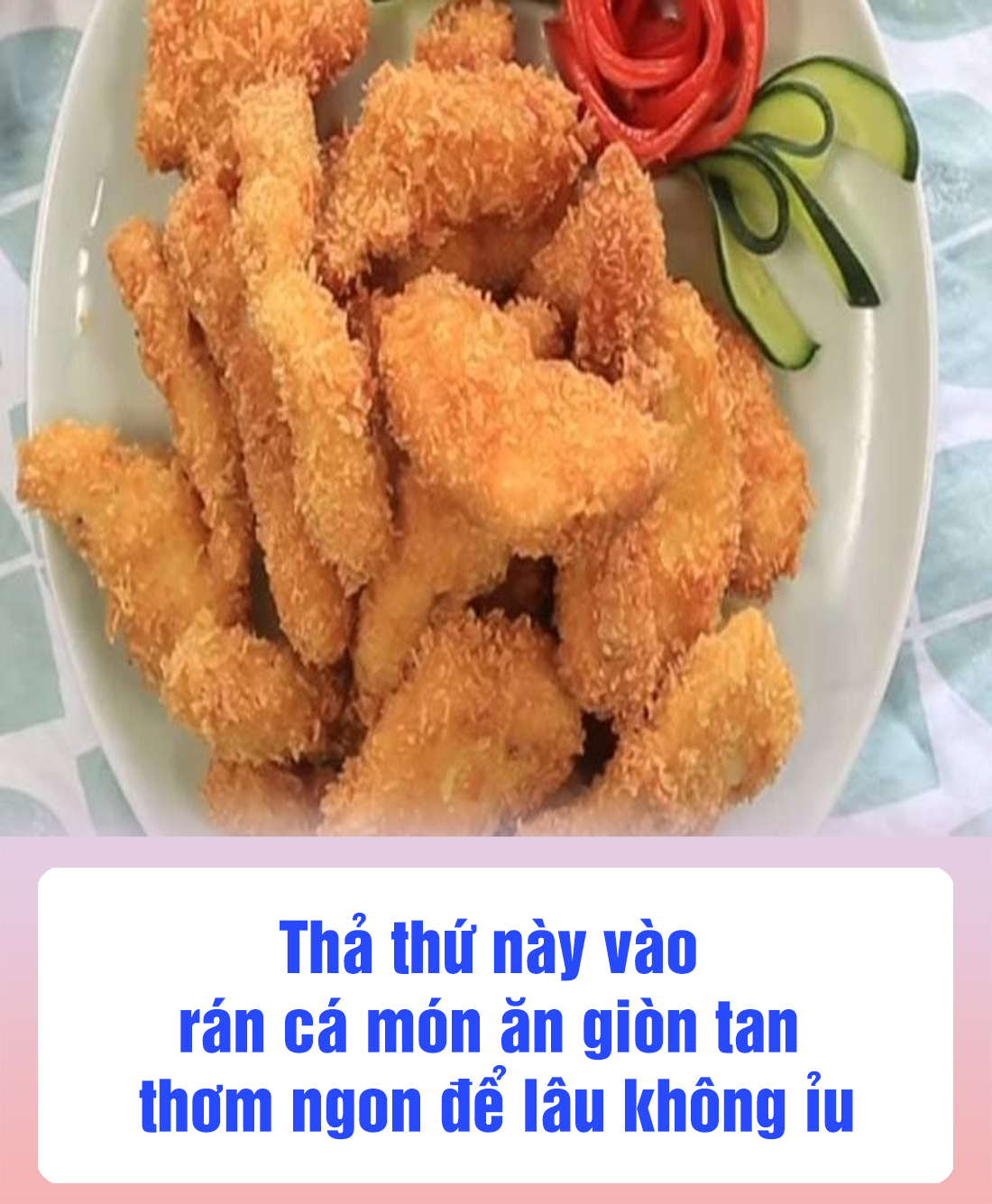 Món cá chiên xù vàng ruộm, vỏ giòn rụm, cắn một miếng nghe “rộp rộp”, thịt cá ngọt mềm, thơm lừng mùi nghệ và gia vị. Dọn kèm rau xà lách, dưa leo, cà chua và chén nước mắm chua ngọt là cả nhà mê tít. Chỉ vài bước đơn giản là bạn đã có món ngon dự trữ tiện lợi, tiết kiệm thời gian mà vẫn đảm bảo bữa cơm gia đình hấp dẫn. Chúc các chị em nội trợ thành công và cả nhà ăn ngon miệng nhé!