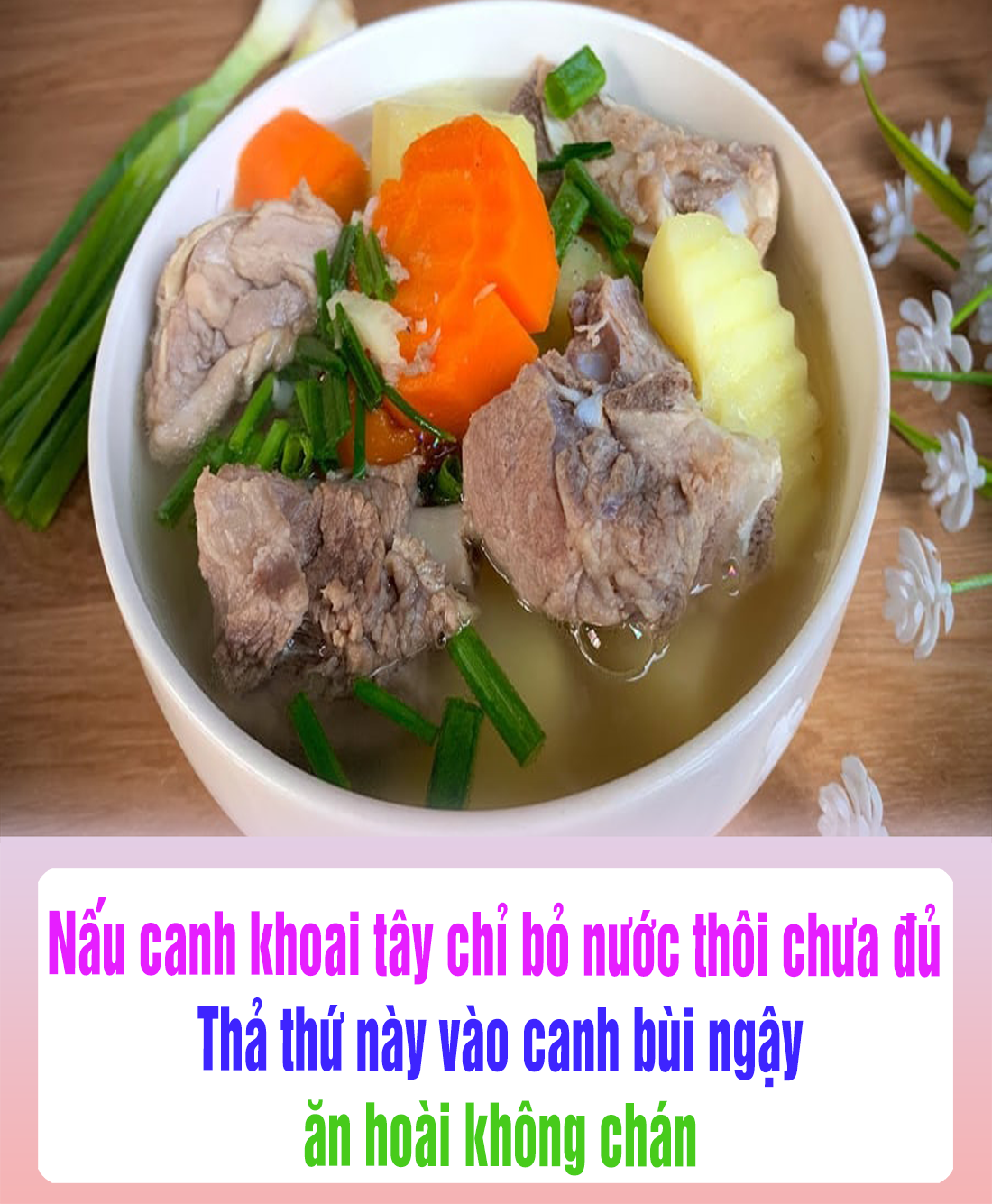 Món canh khoai tây hầm xương giàu dinh dưỡng rất tốt cho sức khỏe của mọi người. Với công thức hầm canh khoai tây dưới đây bạn sẽ có một món ăn thơm ngon hấp dẫn nhất.