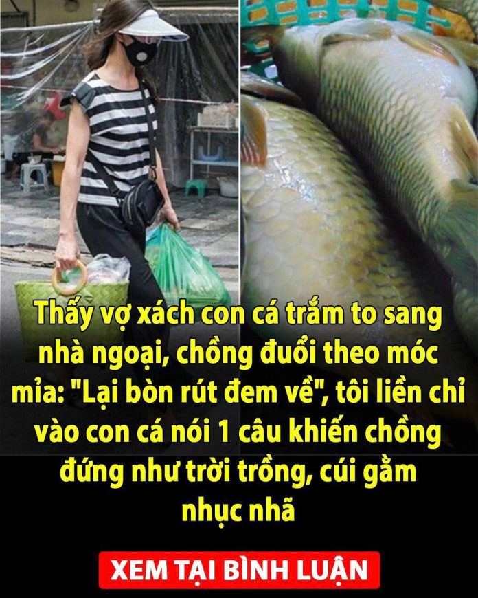 Thấy vợ xách con cá trắm to sang nhà ngoại, chồng đuổi theo móc mỉa: “Lại bòn rút đem về”, tôi liền chỉ vào con cá nói 1 câu khiến chồng đứng như trời trồng, cúi gằm nhục nhã