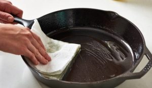 Đốt nóng chảo trong nhiệt độ cao khi không có dầu sẽ dễ làm bong lớp chống dính, làm giảm tuổi thọ của chảo đi rất nhiều. Do đó chúng ta chỉ nên đun nóng đến khi bề mặt chảo khô ráo thì có thể cho dầu vào.