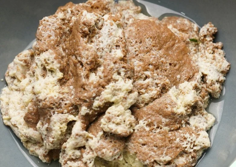 Trong lúc xay/giã cua, tôi sẽ cho vào đây vài hạt muối. Loại gia vị này sẽ giúp các protein trong thịt cua liên kết với nhau một cách tốt nhất. Cũng nhờ đó mà khi nấu lên thịt cua đóng thành tảng, không bị tan ra.